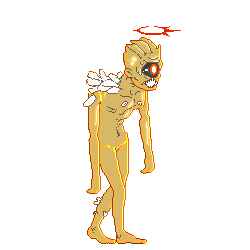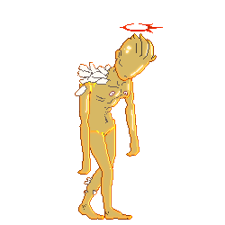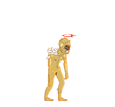 For the base enemy-design I asked myself how I would expect minions from heaven kingdom to look like. I didn't want them to look too much like angels, because they should be distinguishable from bosses. I also wanted to highlight eyes in a similar way to biblically accurate angels. On the whole they should look a bit gross (to support the title "heaven is a lie") and demonic without looking like an actual demon. So I had the idea to cover them in liquid gold and give them a halo to show their connection to angels.