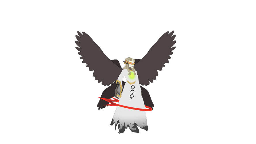 For Hyrax I've created a self-interpretation of a biblically accurate angel. It was especially important to me that he has multiple wings, a halo and at least one ring with eyes. I also thought he would feel more mysterious and dangerous, if the player can't see his face. So I gave him a mask with soft mannequin-like facial features. For his halo I've decided to revive the shape of the basic enemies' halo and make it way bigger. The wings are black to make him look more evil.